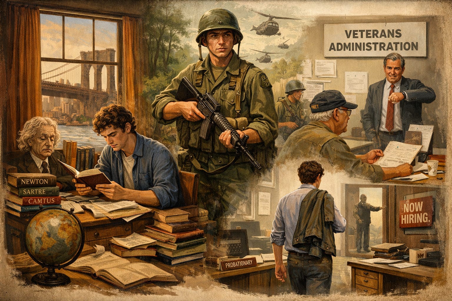 College did not feel meaningful, and I flunked out. So, I joined the Army (during the Vietnam War). After I got out of the Army and graduated from college (with a degree in philosophy), I briefly worked for the Veterans Administration as a veterans’ benefits counselor. Veterans would come into the office with their concerns and questions and we counselors tried to help them.