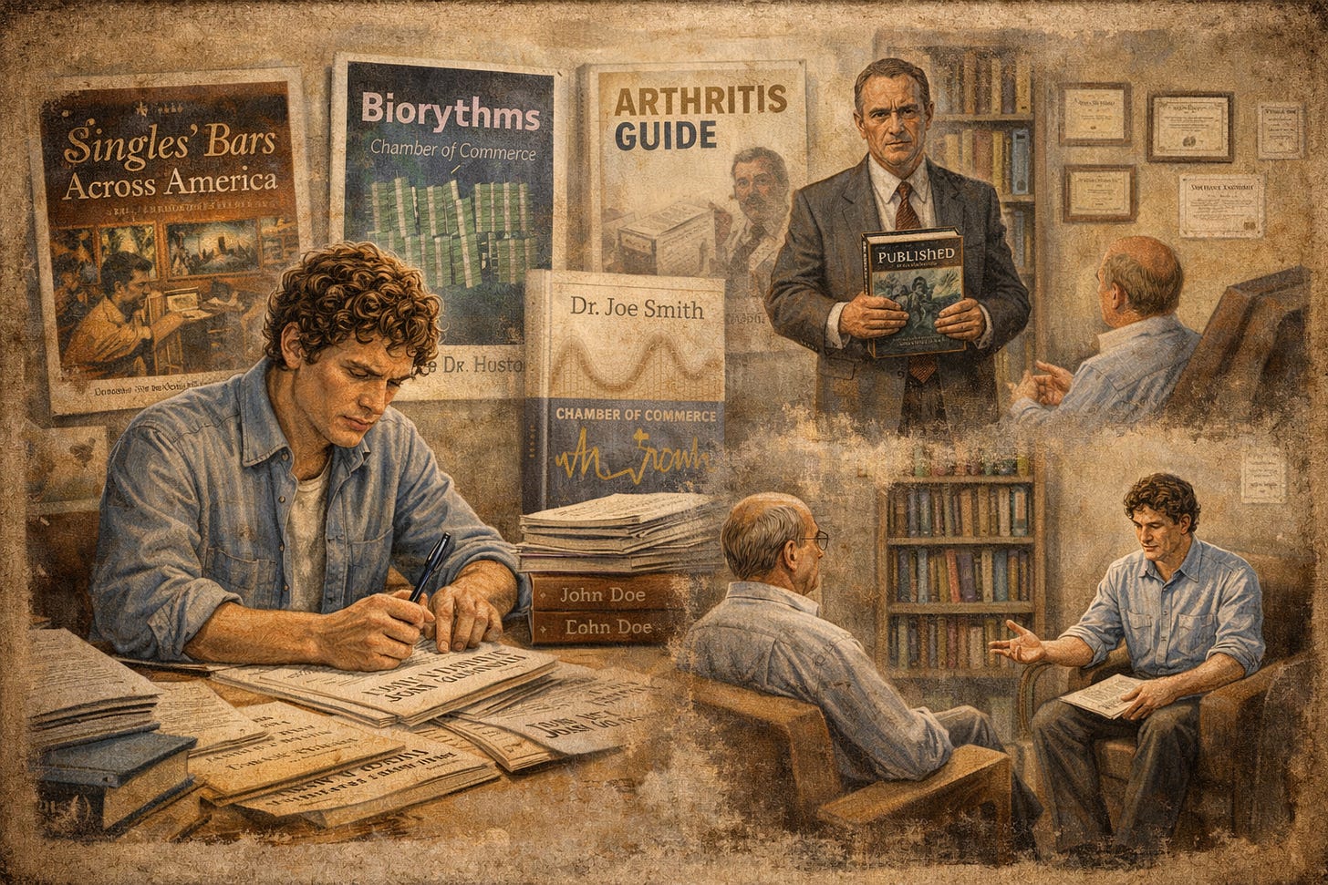 More tellingly, was it okay to write an arthritis guide when I knew nothing about arthritis? This well-paid one I just couldn’t make myself do. Instead, I handed it off to a friend, who tackled it gleefully, creating a book’s worth of made-up arthritis cures.