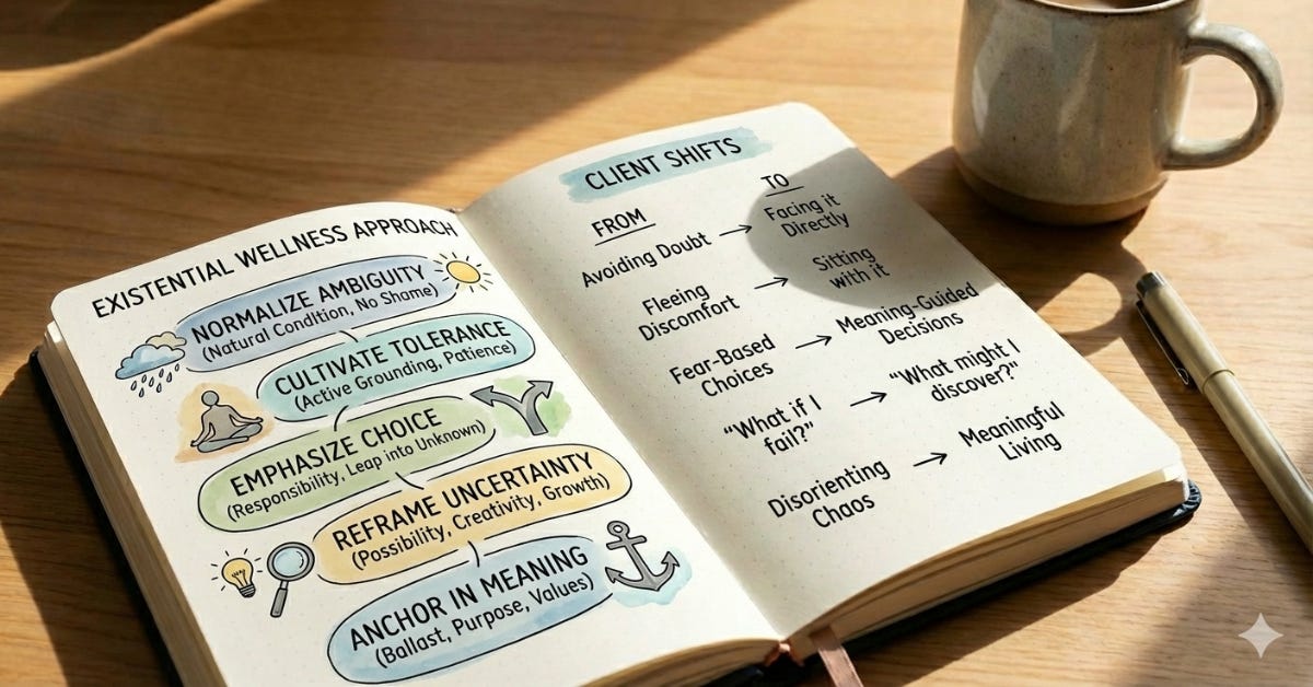 [Throughout the first half of 2026, I hope to provide you with a robust picture of how existential wellness coaches work with their clients on fundamental existential issues. If you’d like to learn more about the Noble-Manhattan Existential Wellness Coaching Certificate Program that I’ve developed, please visit here. There are scholarships available and all of the resources of the Noble Manhattan family. Come take a look. Today’s offering is Part 9 (and the final) of a mini-series on ambiguity and uncertainty, two issues with which your clients are unquestionably wrestling.]