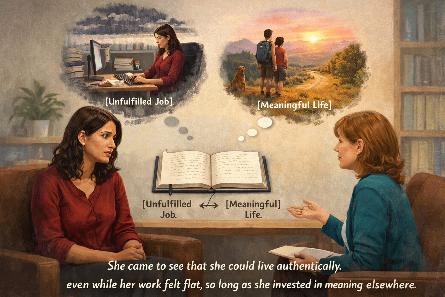 Patricia, a paralegal, longed for deeper purpose but couldn’t afford to leave her firm. Her coach said, “Part of existential wellness is living with the fact that not every domain of life will feel meaningful at every moment.” They worked on tolerating this “gap” without spiraling into despair. Patricia began journaling about the difference between her job and her broader life. She came to see that she could live authentically even while her work felt flat, so long as she invested in meaning elsewhere.
