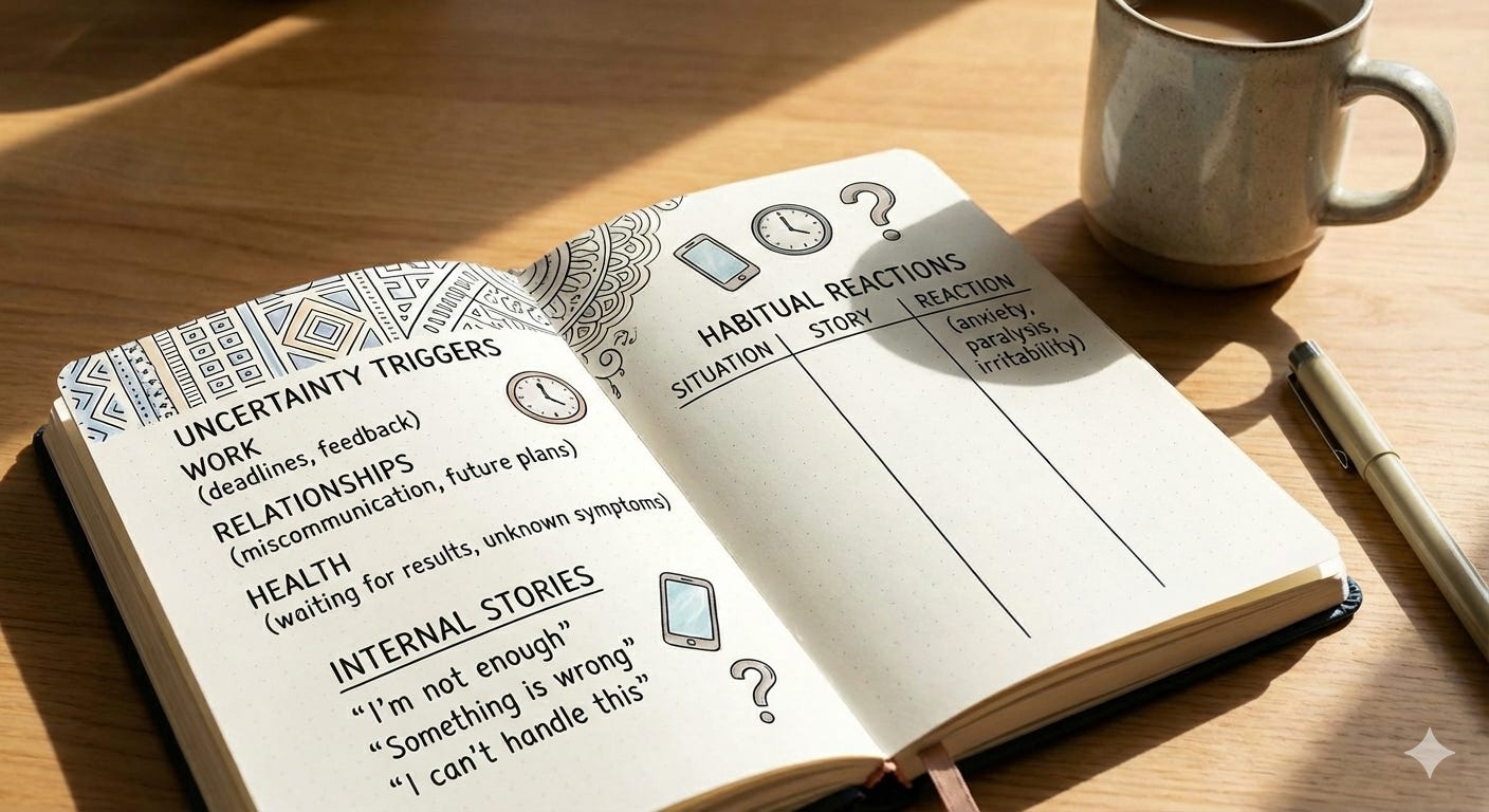 These situations might include waiting for medical test results, not knowing how someone feels about us, navigating financial instability, or facing career transitions. What’s triggering for one person may feel completely manageable to another—so tracking our individual responses becomes a deeply personal process.
